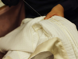 창을 통해 들어와 이불보의 꽃들을 비추는 무지개가 따스합니다.