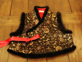 은은한 색의 저고리와, 금박을 두른 배자를 함께한 신랑 한복입니다.