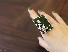 모던한 색상의 원석과 과감하게 피어난 잎사귀 장식의 브로치는