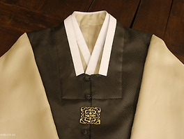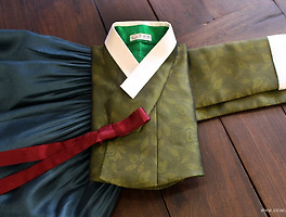 색의 대비도 강렬하여 붉은 고름까지 모두 한 벌의 옷 전체가 견고하게 완성된 느낌이 듭니다.