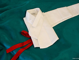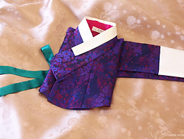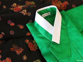 무늬는 다르지만 비슷한 광택과 재질감을 가진 파란색 원단으로 저고리를 만들었습니다.