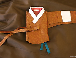 원단의 질감이 가진 무광스러운 광택감, 그리고 진한 카페라떼가 떠오르는 저고리 색은, 깊이있는 부드러움을 가진 색상입니다.