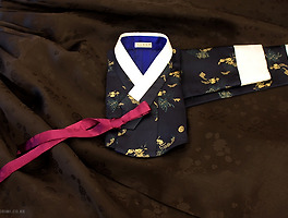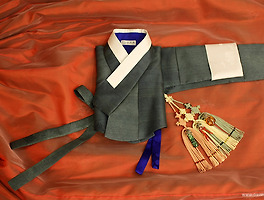 이렇게 깃과 고름에 짙은 초록색의 금사 양단을 넣었기 때문이겠죠.