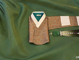 자개를 멋스럽게 세공하여 만든 자개 브로치를 함께해도 잘 어울리는 한 벌입니다.