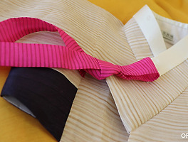 다른 색상이나 원단을 넣지 않고, 하나의 원단으로 한 벌을 만들고 하얀 비단동정으로 마무리했습니다.