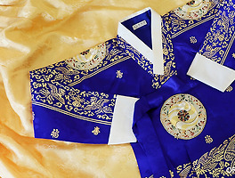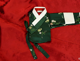 이 화려하디 화려한 금사 치마는 특히나 요즘 인기가 올라가고만 있는 원단입니다. 중후함과 화려함을 동시에 지니고 있어 겨울의 잔치에 화사한 이미지를 드러내기에는 제격이거든요. 특히 올 겨울이 지나면 이제 이 원단으로 짓는 새 옷은 보기 힘들어질 것 같습니다.