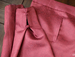 꽃잎처럼 보이기도 하는 잎새들이 치마를 꽉 채웠습니다. 빛에 따라 보이는 정도가 달라지면서 광택과 함께 보일 듯 말 듯 매혹적인 문양의 자줏빛 치마입니다.