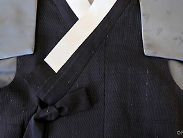 장신구 없이도 충분히 제 아름다움을 가진 한 벌이지만, 슬며시 노리개 하나를 가져와 함께해 보았습니다. 파란 안고름을 떼고 노노리개를 달아 주니 성숙한 멋이 더 살아나는 한복이 되었습니다.