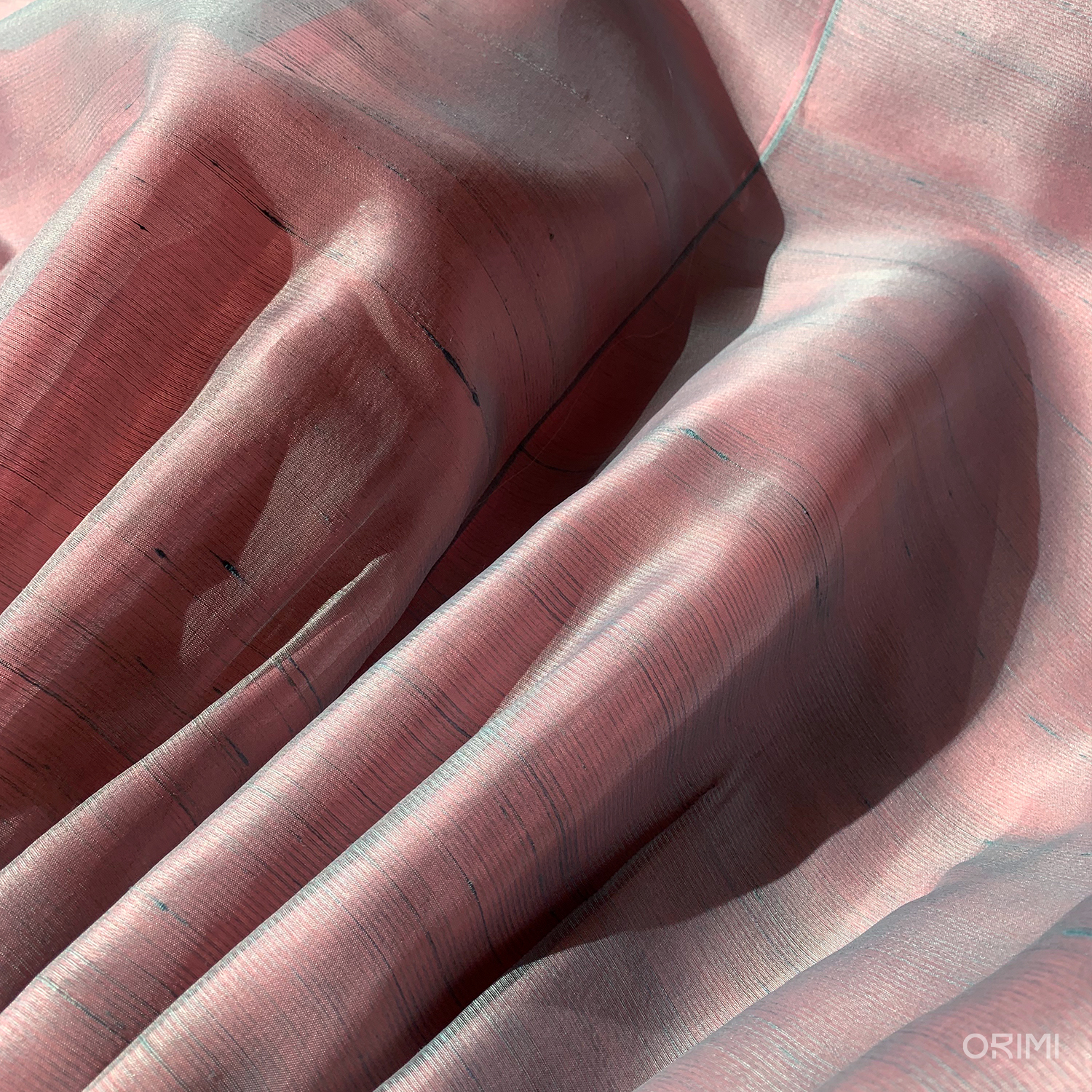 붉은 안감 위로 투과율이 높은 회색빛 비단을 겹쳐 치마를 만들었습니다. 푸른 기가 도는 회색과 거친 질감의 가로결이 멋진 원단입니다.
