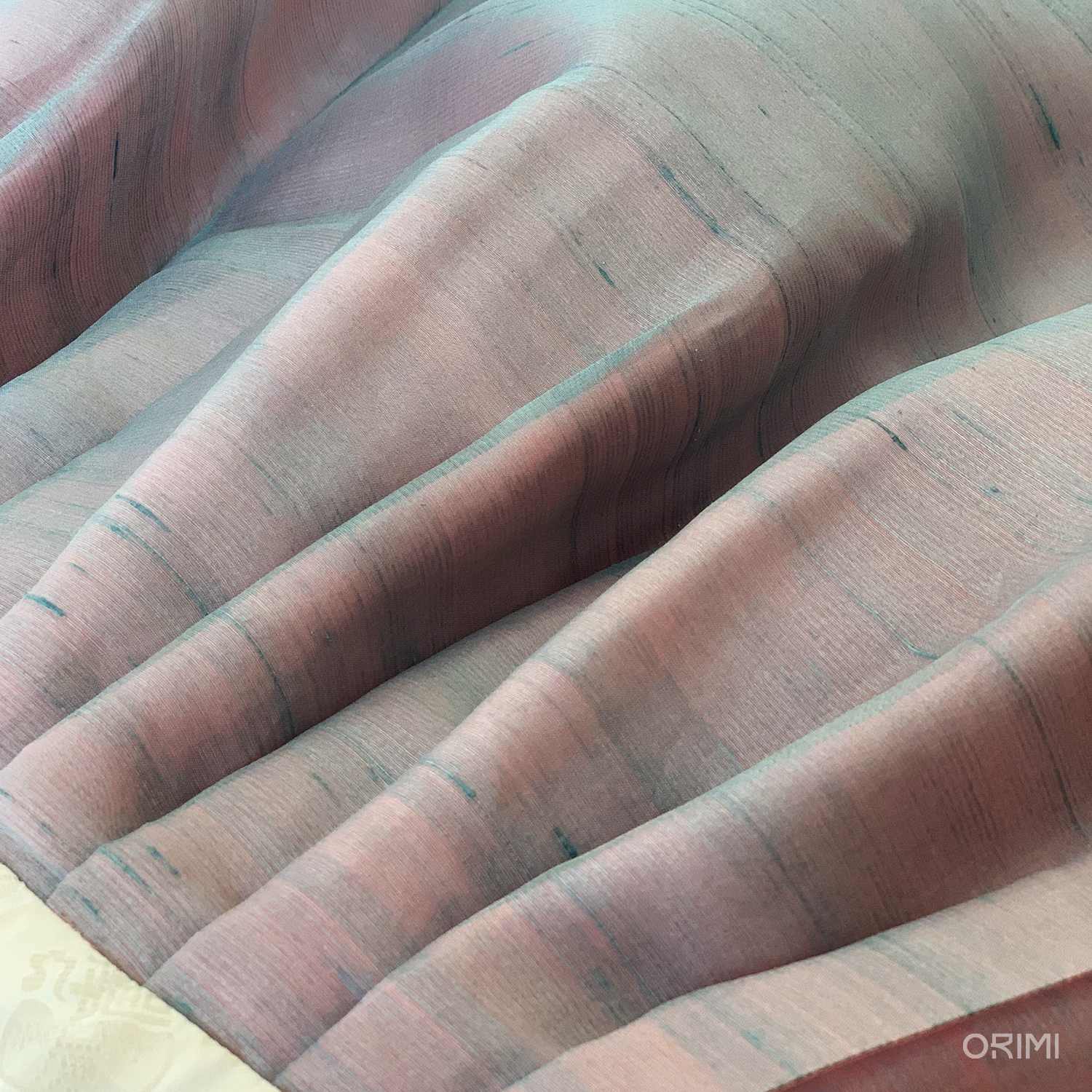 붉은 안감 위로 투과율이 높은 회색빛 비단을 겹쳐 치마를 만들었습니다. 푸른 기가 도는 회색과 거친 질감의 가로결이 멋진 원단입니다.