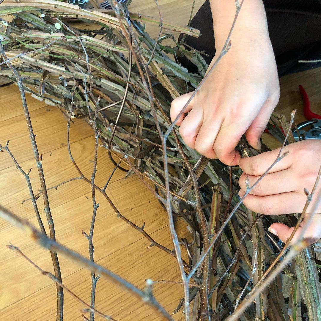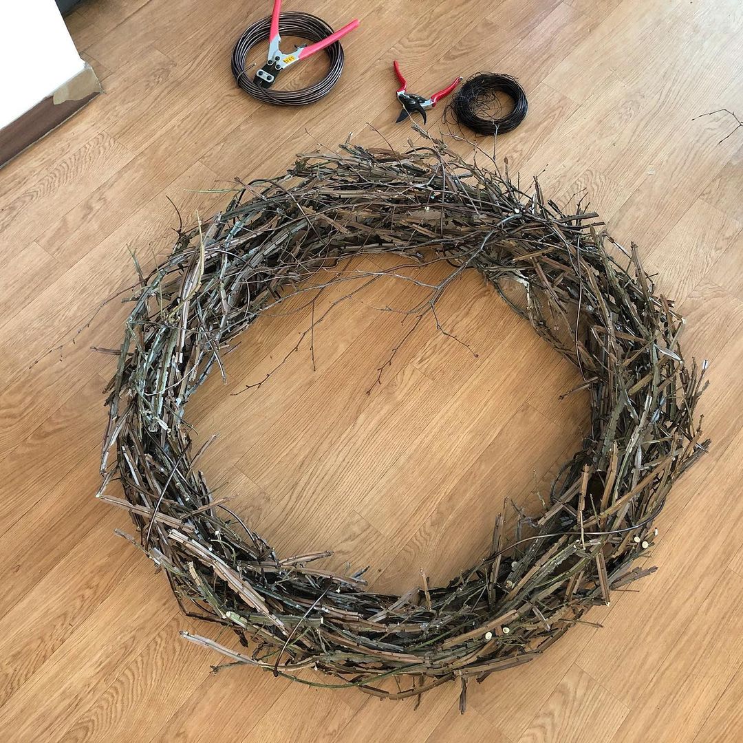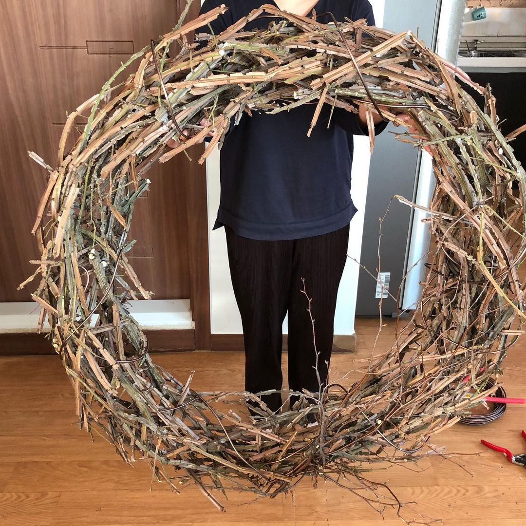 주말 하루, 집 마당의 담벼락에 기대어 자라던 화살나무를 이용해서 연말용 리스를 만들기로 계획했어요.