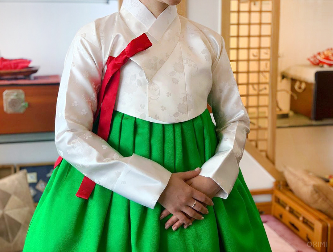 하얀 저고리에 유독 잘 어울리는 빨간 고름. 초록색과 빨간색이 만나니 전통적인 녹의홍상의 '분위기'도 어디선가 묻어나는 듯 하죠.