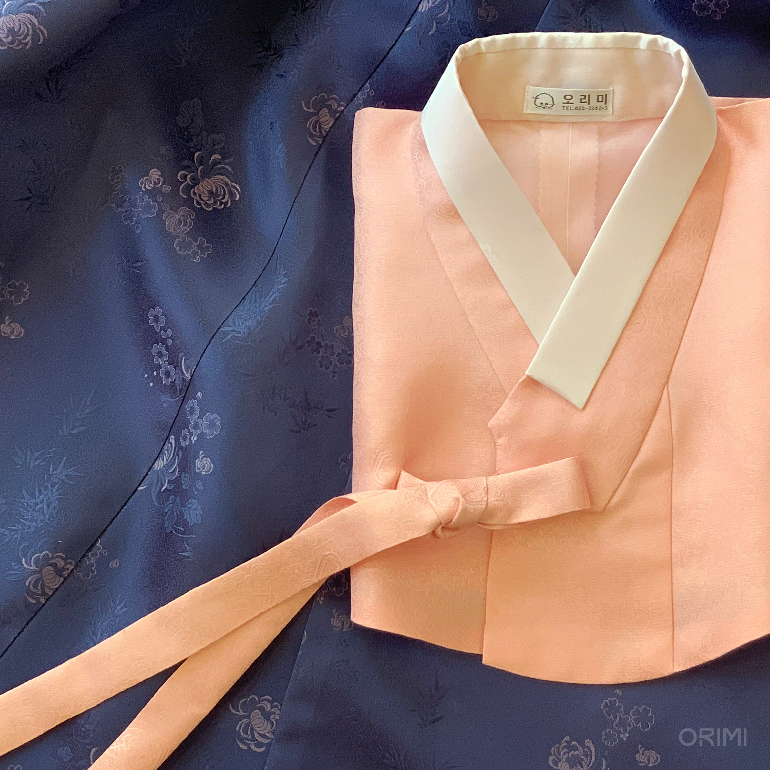 화려하게 문양이 들어간 청보랏빛 양단 치마가 눈에 띄어 함께 조합해 보았습니다.