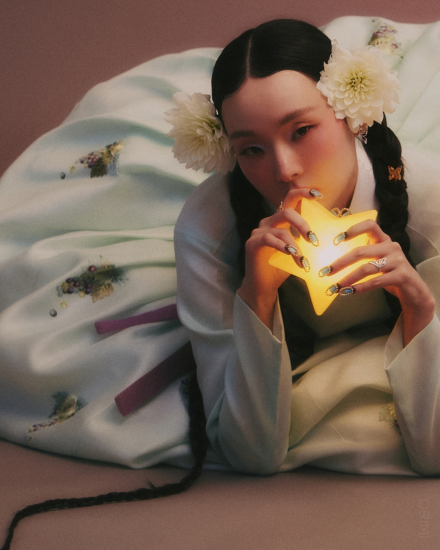 2024년 보그 코리아 10월호 패션화보 '일생일대의 제일보, 신부' 한복 화보에 오리미의 포도 한복이 함께했습니다.