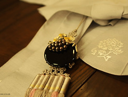 오리미 한복장신구 (37) 썸네일형 리스트형 진한 노란 빛 머금은 호박 반지 정말 깊어 보이는 찌인-한 노란빛이 호박의 매력을 잔뜩 살려 주는 반지입니다. 가을날엔 은행잎 같은 진한 빛으로, 봄날엔 설레이는 맘 같은 들뜬 밝은빛으로 느낄 수 있는, 고런 멋 느껴지지 않나요? 호박은, 소나무류의 나무에서 나오는 송진이 수천년에서 길게는 수억만년까지 지하에서 굳어져 화석처럼 변한 것이라지요. 예전에 쥬라기공원 영화를 보신 분들은 모두 기억하실거에요. 호박속에 굳어버린 모기로부터 공룡의 DNA를 추출해서 공룡을 재현하잖아요. 호박 속에 굳은 생물은 온전한 상태로 보관되기 때문에 연구자료로도 귀하게 쓰인다죠. 그만큼 긴긴 시간과 세월을 담고 있는 만큼 이야기도 무궁무진한 보석이 호박이 아닐까 싶어요. 호박(Amber) 은 제 안의 과거의 어느 한 순간을 품고서 나를 찾아온다. 저 푸른 .. 초록빛 비취 반지 초록빛과 검은 무늬가 섞인 비취로 만들어진 반지에요. 자수가 잔뜩 놓여진 서랍을 살짝 열어 올려봤지요. 초록빛에 어울리라고 일부러 초록빛을 내는 식물들 앞에 가서 찍어봅니다. 큰 크기지만 너무 올드하지도 않고, 한복은 물론이고 정장에도 잘 어울리겠죠? 단아한 회색 저고리 위에도 사알짝 놓아 봅니다. 초록빛이 이렇게 단정하면서도 차분한 느낌마저 주네요. 아참, 알고 계시는지... 혹시나 해서. 오리미 한복의 모든 악세사리는 공방에서 하나하나 손으로 만들어 지는 물건들입니다. 전통 화관 _ 조선시대 신부를 빛내던 예관 가을 디스플레이에 꾸며진 소품 중 하나인 화관. 혼례나 경사시에 대례복을 입을 때 착용하던 장신구에요. 신부가 활옷을 입을 때에는 화관을 쓰고, 원삼을 입을 때에는 족두리를 착용했답니다. 본래 양반계급의 부녀자들이 착용하던 화관이 혼례 때 사용된 건 조선시대에 이르러서라고 해요. 화관은 종이 백비에 검정 비단을 바르고, 갖가지 보석을 달아 아름답게 꾸미는데, 혼례용은 이마 위에 진주구슬을 늘인답니다. 혼인 날의 주렴은 자주색에 금박을 한가득 새겨 찬란하고 호화롭구요, 주렴과 함께 진주나 산호 구슬로 장식한 앞댕기를 용잠 양쪽에 달아 어깨위에 늘였어요. 아마 이 모습은 다들 익숙한 우리나라 전통혼례의 모습이라 상상하기 쉬울 거에요. 아참, 주렴은 말이죠. 저도 처음엔 잘 몰랐는데 도투락댕기를 말하는 거에요.. 라벤더 비취 반지 라벤더 비취로 만들어진 단정한 반지- 그리 크지도, 그리 작지도 않은 크기로 한복과 양장 모두를 아주 자연스럽게 어우를 수 있는 요긴한 아이템이랄까요. 서양에 에메랄드가 있다면 동양에 비취가 있죠- 옛날 옛적부터 동양인들이 좋아라 하던 비취. 현란한 반짝임이나 광채보다는 은은하고 우아한 색감을 가지고 있는, 그래서 더욱 한복과 잘 어울리는 비취! 포도송이 브로치와 블랙 오닉스 반지 심플하고 깊이있는 블랙 오닉스 위에 포도송이가 올려진 브로치에요. 요 브로치 역시 노리개와 함께해 봤지요. 단순할 수도 있던 디자인에 포도 장식이 얹혀져, 과하지 않으면서도 여성스러워졌죠. 셋트로 만들어진 건 아니지만, 같은 색의 블랙 자마노 반지를 꺼내봅니다. 심플한 모양에 테두리 나뭇잎으로 포인트를 준 매력적인 반지에요. 요렇게 회색 저고리 위에서는 얌전하고 정갈하다가도 붉은 저고리 위에서는 요렇게 매혹적인 느낌을 주지요. 함께하는 색상에 따라 180도 다른 매력을 주는 것이 블랙의 매력! 블랙 오닉스와 진주 브로치, 반지 짙고 짙은 블랙 오닉스와 진주가 만난 반지입니다. 한복에 너무나 잘 어울리지만 평상시 양장에 착용해도 무방한 디자인. 매끄러운 곡선으로 다듬어진 오닉스와 비정형적인 모양의 진주와 대나무잎이 어우러졌어요. 사진엔 손에 끼는 반지 부분이 잘 보이지 않지만, 잎사귀와 연결되어 대나무 대 모양으로 다듬어져 있답니다. 반지와 브로치 각각 단품으로도 이용할 수 있음은 물론이고, 요렇게 브로치를 노리개 위에 달아 일석이조의 효과를 내는 것은 오리미에서 즐겨 하는 멋부림이죠- 회색의 저고리와 함께하니 중후하면서도 단정한 멋. 진한 빛 치마와 매치하면 짙은 블랙빛이 더욱 빛을 발하지 않을까 생각해봐요. 박쥐 문양 가락지 - 가락지에 얽힌 이야기들 요 가락지는 무게가 엄청나요. 무려 은이 30돈이나 되는 가락지거든요. 무게도 무게지만 두께도 꽤나 두꺼워 왠만치 손가락 긴 사람 아니면 낄 수 없는 그런 새침한! 가락지입니다. 모델만큼 예쁜 손은 아니지만 우리 오리미 식구들 중 가장 손가락 긴 제가 대표로 나서봅니다. 옛날 조선시대엔 왕족들이나 낄 수 있는 고귀한 가락지였죠. 이렇게 묵직하니 거의 손을 쓸 일 없는 귀족들이나 가능한 장신구임이 당연하지요. 사알짝 손을 들어, 이거 해라~ 저거 해라~ 라고 아랫것들에게 시키는 정도만 손을 쓰면 되었을 테니...! 박쥐는 예로부터 장수와 행복을 상징합니다. 박쥐가 적응력이 강한 동물이기도 하고, 번식력이 강하기도 하여 다산을 기원하기도 했다죠- 옛날에는 가락지를 끼는 것으로 처녀와, 시집 간 부녀자를 구분.. 비취 반지와 브로치 은은한 라벤더빛 같기도 하고 투명한 회색빛 같기도 