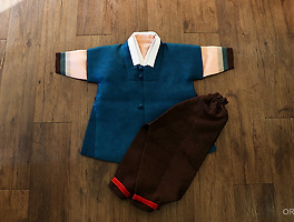 오리미한복/아이 한복 (75) 썸네일형 리스트형 색동 분홍저고리와 바지, 새파란 쾌자의 남자아이 돌 한복 뽀얀 연분홍 색을 중심으로 양 팔에 색동을 넣은 남자아이 색동 저고리입니다. 청록색, 하얀색, 노랑, 분홍, 파랑... 원색적이고 선명한 색상 위주로 색동 배색을 넣어 전통적인 느낌이 물씬 나는 저고리가 되었습니다. 저고리와 바지의 배색을 통일하니 전통적인 느낌이 더욱 강해집니다. 아이 옷이지만 디테일 하나하나 어른 옷만큼 섬세하게 만들어집니다. 분홍 저고리와 바지 위에 입을 겉옷으로 쾌자를 골랐습니다. 아주 새파란 색의 원단으로, 여밈깃의 쾌자를 지었습니다. 색동 저고리 위에 쾌자를 입습니다. 새파란 색 쾌자가 선명한 색동 소매와 경쾌하게 잘 어우러집니다. 전통적인 색감, 옛 그림에서 본 듯 한 이 배색은 오히려 지금은 보기 드물기 때문에 신선한 느낌을 주는 전통적인 남자아이 한복입니다. 선명한 원색들.. 설빔 해 입은 두 남매, 오리미 아이한복 설빔으로 해 입은 새 한복을 차려 입고, 남동생과 사이좋게 걸어 봅니다. 설날을 맞아 동생과 함께 설빔을 해 입었습니다. 그리고 엄마, 아빠와 함께 기념 사진을 찍으러 갔다고 해요. 이번 설날에도 이렇게 곱게 차려입고 가족들을 만났겠지요? 화사한 국화 문양이 아름다운 파란색 양단 저고리와 분홍 치마를 함께한 여자아이 한복입니다. 누나와 함께 새 옷을 해 입은 남동생은 연한 회분홍색 저고리와 황토색 바지 위에 갈색 반수의를 입었습니다. 어디서 본 건 있다고, 멋진 한복을 입으니 조선 시대 무사라도 된 기분일까요. 늠름하게 보이겠다고 발차기를 해 봅니다. 늠름한 발차기에도 불구하고 누나와 함께 손톱에 칠한 분홍 매니큐어는 숨기지 못했답니다. 동생이 발차기 삼매경에 빠진 사이, 누나는 .. 붉은 쾌자와 복건, 연회색 저고리와 남색 바지의 남자아이 한복 연회색 저고리와 남색 바지를 입고, 붉은 양단의 쾌자를 입었습니다. 쾌자와 같은 원단의 복건까지 함께 써 주면 의젓한 꼬마도령 같은 모습이 되겠죠? 얇은 곡선으로 빼곡하게 문양이 그려진 이 붉은 원단은 고급스러운 멋이 가득합니다. 이 분위기를 더욱 살리려면 배자보다는 쾌자가 훨씬 멋스러웠어요. 쾌자만으로도 충분히 포인트가 되고 있기에, 받침옷인 저고리와 바지를 깔끔한 색상의 구성으로 맞추었답니다. 진한 남색 바지는 붉은 색 쾌자 아래에서 힘 있는 배색이 되어 줄 거에요. 붉은 쾌자와 복건, 연회색 저고리와의 배색은 열정적인 에너지가 느껴지면서도 진중한 분위기가 느껴집니다. 하지만 아이가 입었을 때의 분위기는 한층 더 밝아질 거에요. 모든 옷을 챙겨 입고, 복건까지 모두 써 본 아이의 뒷모습입니다. 모든 .. 청록색 저고리와 조바위, 자주색 치마의 여자아이 한복 문양이 화려한 검정 양단을 고름과 소매에 배색한 청록색 저고리와 청록색 조바위, 그리고 채도높은 자주색 치마를 함께한 여자아이 한복입니다. 언뜻 보면 어른용 한복과 거의 흡사해 보이지만, 자세히 보면 낮은 목깃과 얇은 동정 등 다른 부분을 조금씩 발견할 수 있을 거에요. 어른이 입어도 예쁘지만, 이렇게 선명한 색들은 아이들이 입었을 때 더욱 예쁜 색이기도 합니다. 저고리와 치마가 선명한 색인지라, 소매와 고름에는 진한 배색을 주어 고급스러운 느낌을 더했습니다. 대신, 어두운 검정 바탕에 다채로운 색들로 그려진 전통문양이 독특하면서도 화사하죠. 날이 다르게 커 가는 아이의 신체를 고려하여 허리끈이 달린 형태의 치마로 제작했습니다. 치마와 같은 원단으로 자주색 댕기도 함께 만들었어요. 만들어진 한복을 입어 .. 넓은 배색의 색동 저고리와 진붉은 잎새단 쾌자의 남자아이 돌 한복 넓은 폭으로 시원시원하게 배색된 색동 저고리와, 옅은 황토색 바지는 돌을 맞은 남자아이의 돌 한복입니다. 선명한 색감과 톤다운된 색상을 섞고, 색동의 폭을 넓게 배색하니 시원시원한 남자아이 색동 저고리가 완성되었습니다. 저고리의 몸통 부분이 분홍색인데도, 소매에 배색된 색상들 덕분에 여성스러운 느낌보다는 시원하고 선명한 느낌이 더 많이 들게 됩니다. 이 멋진 분홍색 색동 저고리 위에는 진붉은 잎새단으로 쾌자를 지었습니다. 마냥 어린아이 같은 색동 위에 쾌자를 덧입고 고름을 묶으면, 아이가 언제 이렇게 컸나 늠름해진 느낌이 들 거에요. 연한 황토빛 바지까지 함께한 모습입니다. 연황토빛 바지에 부드럽게 도는 광택과, 바짓단에 넣은 진붉은 색까지 전체적인 분위기가 고급스럽게 보이도록 신경써서 맞춘 배색입니다... 엄마 어릴 적 처럼, 초록 저고리와 빨간 치마의 색동 돌 한복 선명한 초록색 저고리와 빨간 치마, 소매에 색색깔로 배색된 색동... 어딘가 굉장히 익숙하지 않나요?그렇습니다. 우리 어릴 적 돌 사진 속에 내가 입고 있던 그 한복의 느낌이에요. 80년대까지만 해도 이렇게 선명한 색동 돌 한복을 입히고 사진관에 가서 돌 사진을 찍는 것이 필수였는데 지금은 이런 원색의 돌 한복을 잘 입지 않죠. 그렇기 때문에 더 특별해진 색상과 배색이 되어버린 흔치 않은 옷입니다. 국화 금박이 찍힌 진자주색 조바위까지 보시면 자신의 어릴 