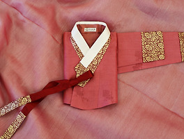 분홍치마 (30) 썸네일형 리스트형 2020년 가을-겨울 디스플레이 한복 (1) 창밖에 노랗게 물든 은행잎들을 바라보며 선 푸른 양단한복 한 벌. 올 가을부터 겨울까지 매장 앞에서 자태를 뽐내고 있는 한복들 중 하나입니다. 밝은 남색 바탕에 섬세한 선으로 전통 문양이 짜여진 양단으로 저고리를 지었어요. 선으로 문양이 그려진 저고리와는 달리 면으로 문양이 짜여진 옥색 양단으로 치마를 지어 함께했고요. 남색 저고리에 옥색 치마의 이 양단한복 한 벌은 새로 시작될 가을-겨울철 시어머님의 혼주한복을 상상하며 만들었답니다. 시어머님을 상상하며 지은 한복이 있으니, 친정어머님을 상상하며 지은 옷도 보여드려야겠죠? 친정어머님의 혼주한복을 상상하며 만든 한 벌은 붉은 색상들로 지었습니다. 섬세하고 얇게 겹친 가로결들이 짜여진 진빨강 저고리, 멋스러운 문양이 짜여진 진분홍색 치마를 함께했습니다. 붉.. 초록 항라 저고리와 선홍색 치마, 녹의홍상 신부한복 겹겹이 겹친 고동색 가로줄이 모여 줄무늬를 만들어내는 초록색 항라 저고리. 여러 색들이 리듬감 있게 결을 그리며 짜여진 가로줄 사이로 안감의 색이 비춰져 더 매력적인 선홍색 치마가 함께한 신부한복입니다. 치마와 저고리 사이에 샛노란 안고름을 달아 한층 더 화사해진 한 벌입니다. 오리미가 재해석하는 2020년의 녹의홍상, 선명한 초록색 항라 저고리에 선홍빛 치마의 밝고 경쾌한 신부한복입니다. 연노랑 색동 저고리와 분홍 치마 한 칸 한 칸, 어우러짐을 생각하며 배색한 화사한 색동 소매가 달린 연노랑 저고리와 연노랑 조바위를 밝은 분홍빛 치마와 함께했습니다. 색동 소매의 연노랑 저고리와 밝은 분홍색 치마의 한 벌은 쌍둥이 동생의 돌잔치에 참석하는 아이의 한복으로 지었습니다. 저고리와 같은 원단으로 맞춘 연노랑색 조바위까지, 밝고 경쾌하기 그지없는 아이의 옷이 만들어졌습니다. 밝고 부드러운 색감이 보는 이의 기분까지 환하게 밝혀주는 듯 한 한복 한 벌입니다. 연노랑 저고리에 단 새빨간 고름이 옷에 경쾌함을 더해줍니다. 쌍둥이 동생들의 생일을 함께 축하하는 누나의 옷으로 지은, 연노랑 색동 저고리와 밝은 분홍 치마의 한복 한 벌입니다. 선명한 분홍색 항라 저고리와 연분홍 항라 치마, 친정어머니 혼주한복 핫핑크색이란 표현을 써야 곧바로 끄덕일 수 밖에 없는, 그런 선명한 분홍색의 항라 원단으로 저고리를 지었습니다. 여름이라 더욱 어울리는 색상이기도 하죠. 색상만으로도 화사하고 경쾌한 분홍색 항라 저고리와, 고동빛 줄무늬 덕분에 차분하면서도 독특한 느낌의 연분홍색 항라 치마를 함께한 친정어머님의 혼주한복입니다. 항라 원단이 주는 독특한 줄무늬가 주는 느낌에 더해, 원단 특유의 빳빳하고 힘 있는 질감 덕분에 고급스러움이 살아납니다. 대나무 금속 장식이 멋진, 우아하고 고상한 삼작 노리개도 함께 연출해 보고요. 환한 백색 비취 원석과, 나비 원석 장식이 달린 비취 노리개도 함께해봅니다. 부드러운 분홍 저고리와 치마, 오리미 친정어머니 혼주한복 부드럽고 단아한 분위기를 가진 분홍색 한복 한 벌, 친정어머님의 혼주한복을 지었습니다. 아무런 무늬도 없는 분홍색 원단으로 지은 이 한복 한 벌엔 다른 색상이나 원단이 개입되지 않고 모든 요소를 통일시켰습니다. 빛을 받으면 더 밝고 부드러워지는 분홍색 치마. 너무 연하지도 진하지도 않은 부드럽고 차분한 분홍빛을 가진 원단입니다. 상하의가 같은 원단으로 통일되어 전통적인 분위기를 자아내면서도 독특한 느낌을 줍니다. 부드럽고 단아한 분위기의 분홍색으로 상하의가 통일된 한복 한 벌, 오리미의 친정어머니 혼주한복입니다. 진분홍 금박 저고리와 분홍 치마, 친정어머니 혼주한복 저고리의 목깃과 소매, 고름에 금박을 찍어 장식한 진분홍색 저고리와 분홍 치마. 오리미의 친정어머니 혼주한복입니다. 진분홍 저고리에 진빨강색 고름을 달고, 같은 색으로 깃과 소매, 곁마기에 배색을 넣었습니다. 진한 바탕색에 금박을 찍었을 때 더 화사하게 빛날 테니까요. 활짝 핀 모란 넝쿨이 가득한 패턴을 돌금박으로 찍어 장식을 더한 저고리와, 안감의 색상을 많이 투영해내는 가로줄 무늬 원단으로 만든 치마를 함께한 친정어머님의 혼주한복 한 벌입니다. 주황색 저고리와 회분홍 치마, 친정어머니 혼주한복 선명한 주황색 저고리에 연두 고름을 달고, 은은한 광택이 나는 회분홍색 치마를 함께했습니다. 강렬한 색감의 저고리로 먼저 시선을 사로잡고, 은은한 가로결과 부드러운 색상이 매력적인 치마로 분위기를 잡는 이 한복 한 벌은 친정어머님의 혼주한복입니다. 밝은 분홍색을 안감으로 품고, 겉으로는 짙은 회색빛이 가로결을 그려낸 원단으로 치마를 지었습니다. 부드러운 연두빛 고름을 단 선명한 주황색 저고리와 회분홍색 치마를 함께한 한 벌, 오리미의 친정어머니 혼주한복입니다. 연분홍 모란 저고리와 분홍 치마의 여자아이 돌 한복 꽃잎 하나하나를 자르고, 다듬어 꿰메어 만들어진 모란꽃이 포인트인 연분홍색 저고리, 같은 원단으로 만든 조바위와 진분홍색 치마의 여자아이 돌 한복입니다. 큼지막한 
